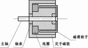 如圖所示為磁滯式制動器工作原理。制動器由兩大部分組成-轉子和定子磁極。轉子由特殊的磁滯材料制成,定子磁極中有一定的氣隙,轉子在氣隙中轉動。當線圈通電時,氣隙中產生磁場,使轉子產生磁滯效應。當磁滯轉子在外力作用下克服磁滯力轉動時,產生額定的扭矩。扭矩僅與激磁電流大小有關,與轉速無關。